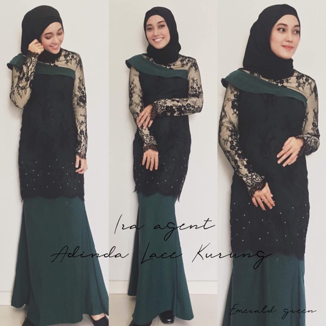 Baju Raya 2018 Adinda Lace Kurung Emerald Green Shopee Malaysia